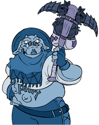 Papi Pombo is a powerful Porc who many years ago built up his own herd of Porcs after being kicked out of the Guild of Explorers. Pombo's size is greater them most Porcs after being hit by an extremely powerful Enlarge spell that has still yet to wear off. Pombo is very bad with faces and so it is very easy to fool him into believing he already knows you. [1]