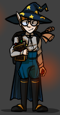 Rick Snot is a male Elf with a thin figure and dark blond hair. Rick wears a white button up dress shirt, with blue pants pulled up over his stomach. He has black knee high boots, as well as a blue cape. He carries a large backpack, full of his URealms equipment for impromptu games while traveling. During his time on the Bocoe, he acquired a wizard hat adorned with stars, similar to Nisovin's. | Rick Snot is a male Elf with a thin figure and dark blond hair. Rick wears a white button up dress shirt, with blue pants pulled up over his stomach. He has black knee high boots, as well as a blue cape. He carries a large backpack, full of his URealms equipment for impromptu games while traveling. During his time on the Bocoe, he acquired a wizard hat adorned with stars, similar to Nisovin's. | ||