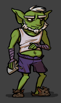 Pryor is a male Greenskin Goblin Monk portrayed by Deadbones in The Many Gobos of Pat Campaign. He is the father of Madelyne and is known to drink. It is also known that he, due to his age, has a bad back.