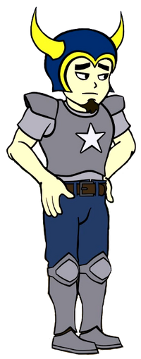 Coe is a male Tall Dwarf with black eyes and a small brown goatee similar to that of a goat patch. He wears a grey armored chest piece with a white star on the center, with two shoulder pieces of a similar material. He also wears grey armored boots that come with knee and shin guards. Underneath his armor, Coe wears a grey shirt tucked into his blue pants with a brown belt. Most notably, he has a unique blue, open face helmet with gold trim along the interior and two large gold horns.