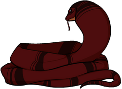 | Snake Friend is a Blood Snake that Jormr owned in Woodcarvers. Jormr's Blood Cobra is a large, dark red cobra, with dark brown bands along its body, and a pale red underside. It also has black eyes, with white, slit-like pupils. Jormr's Blood Cobra was an inhabitant of the forest that Jormr burned down in his incident involving Pyroblast. Following the destruction of its habitat, the Blood Cobra was befriended by Jormr, and followed him to Waldon, where they settled down. Jormr's Blood Cobra was killed and turned into an Ageless being when the Ageless Sheila breathed on him. Jormr then used Lay on Hands in order to bring his trusted friend to a peaceful end.